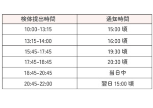 検査日翌日中に結果通知 ※即時と異なり翌日〇時頃といったお約束は出来かねます。